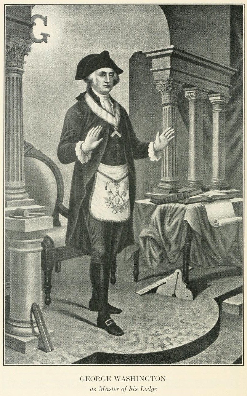 En las dos siguientes ilustraciones vemos a los presidentes Washington y Franklin posando como maestros de sus respectivas logias con sus mandiles y joyas, prestos para abrir una de las tantas sesiones que presidieron con honor y orgullo. La G flamíngera que luce a sus espaldas y el resto de símbolos que aparecen nos recuerda que no estamos en un club de alterne.